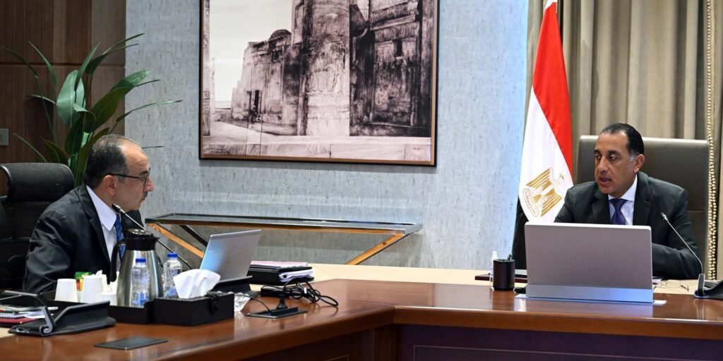 التقى الدكتور مصطفى مدبولي، رئيس مجلس الوزراء، اليوم، المهندس/ محمد شيمي، وزير قطاع الأعمال العام؛ لمتابعة الموقف التنفيذي لمشروع تطوير صناعة الغزل والنسيج، وذلك بحضور الدكتور/ أحمد شاكر، العضو المنتدب التنفيذي للشركة القابضة للغزل والنسيج.