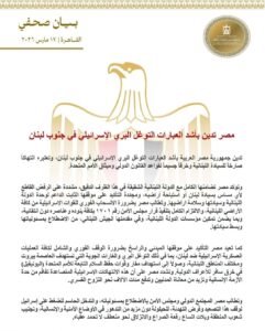 وتدعو مصر كافة الأطراف الليبية إلى إعلاء المصالح الوطنية وإنهاء حالة التصعيد القائمة، والاحتكام لصوت العقل حفاظًا على مقدرات الدولة الليبية.