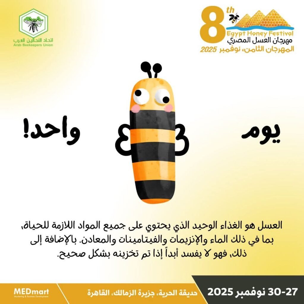 تنطلق فعاليات النسخة الثامنة من مهرجان العسل المصري الحدث الأبرز الذي يحتفي بواحد من أهم منتجات البيئة المصرية على مر العصور . يُعد المهرجان منصة فريدة تجمع بين النحالين والمنتجين والمستهلكين، لتبادل الخبرات والتعرف على أحدث التقنيات في صناعة النحل، واستكشاف أصناف العسل المصري المتنوعة، التي تحمل في طياتها عبق النيل الخالد.