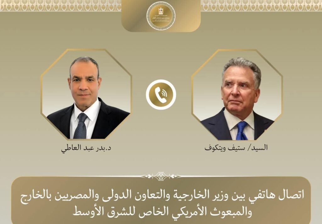 جرى اتصال هاتفى بين د. بدر عبد العاطي وزير الخارجية والتعاون الدولي والمصريين بالخارج والسيد “ستيف ويتكوف” المبعوث الأمريكي الخاص للشرق الأوسط يوم الجمعة ٢٧ فبراير، وذلك في إطار التنسيق والتشاور المستمر بين مصر والولايات المتحدة إزاء القضايا الإقليمية ذات الاهتمام المشترك.