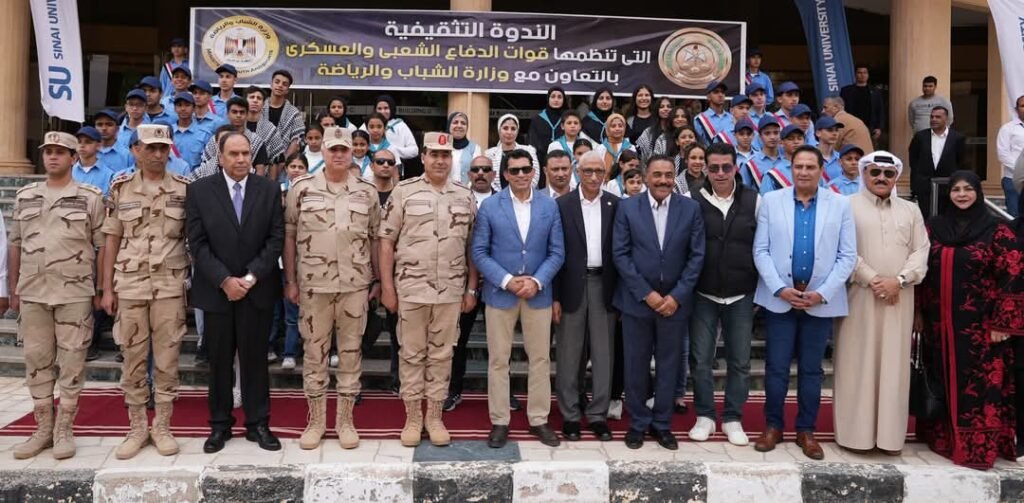 شهد الدكتور أشرف صبحي وزير الشباب والرياضة وبحضور اللواء أسامة عبد الحميد داود قائد قوات الدفاع الشعبى والعسكرى واللواء الدكتور خالد مجاور محافظ شمال سيناء واللواء خالد شعيب محافظ مطروح ونائب رئيس جامعة سيناء الندوة التثقيفية الرابعة عشر والتي نظمتها قيادة قوات الدفاع الشعبى والعسكرى بالتعاون مع وزارة الشباب والرياضة واستضافتها جامعة سيناء بالعريش لطلبة الجامعات المصرية وتناولت الندوة إلقاء الضوء على التهديدات والتحديات التى تواجه الدولة المصرية في ظل التغيرات الكبيرة والأحداث الساخنة في شتي بقاع ودول العالم .
